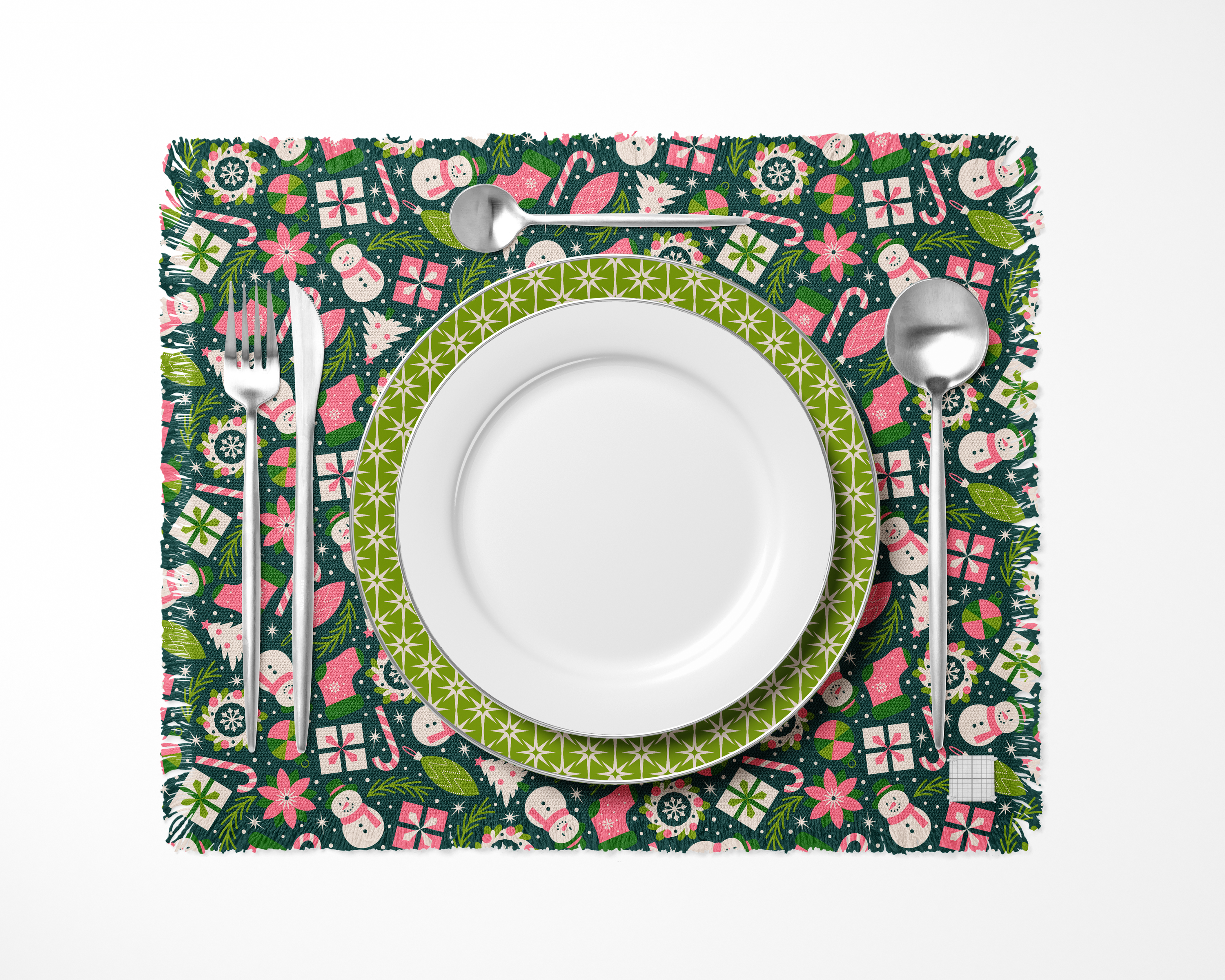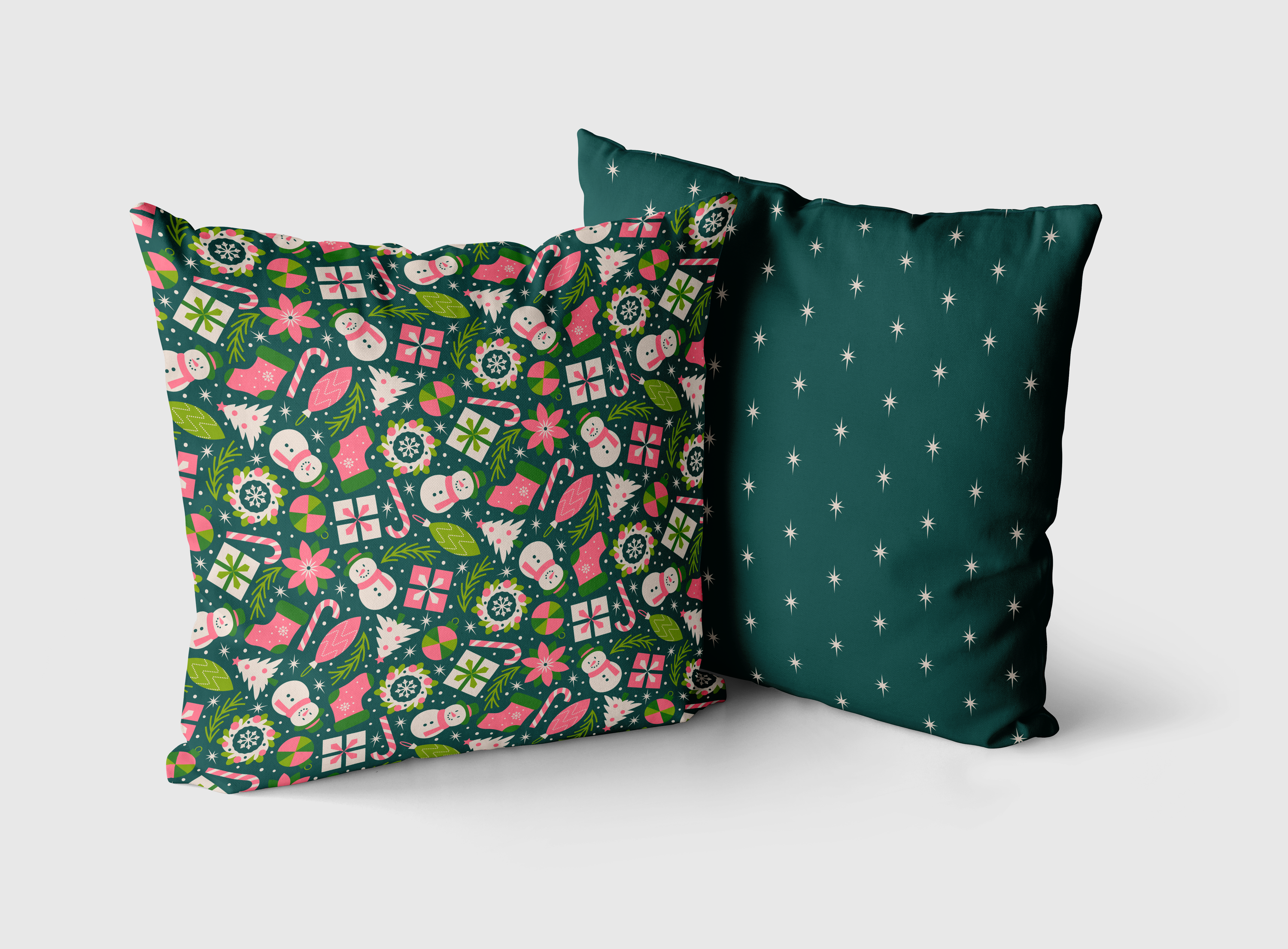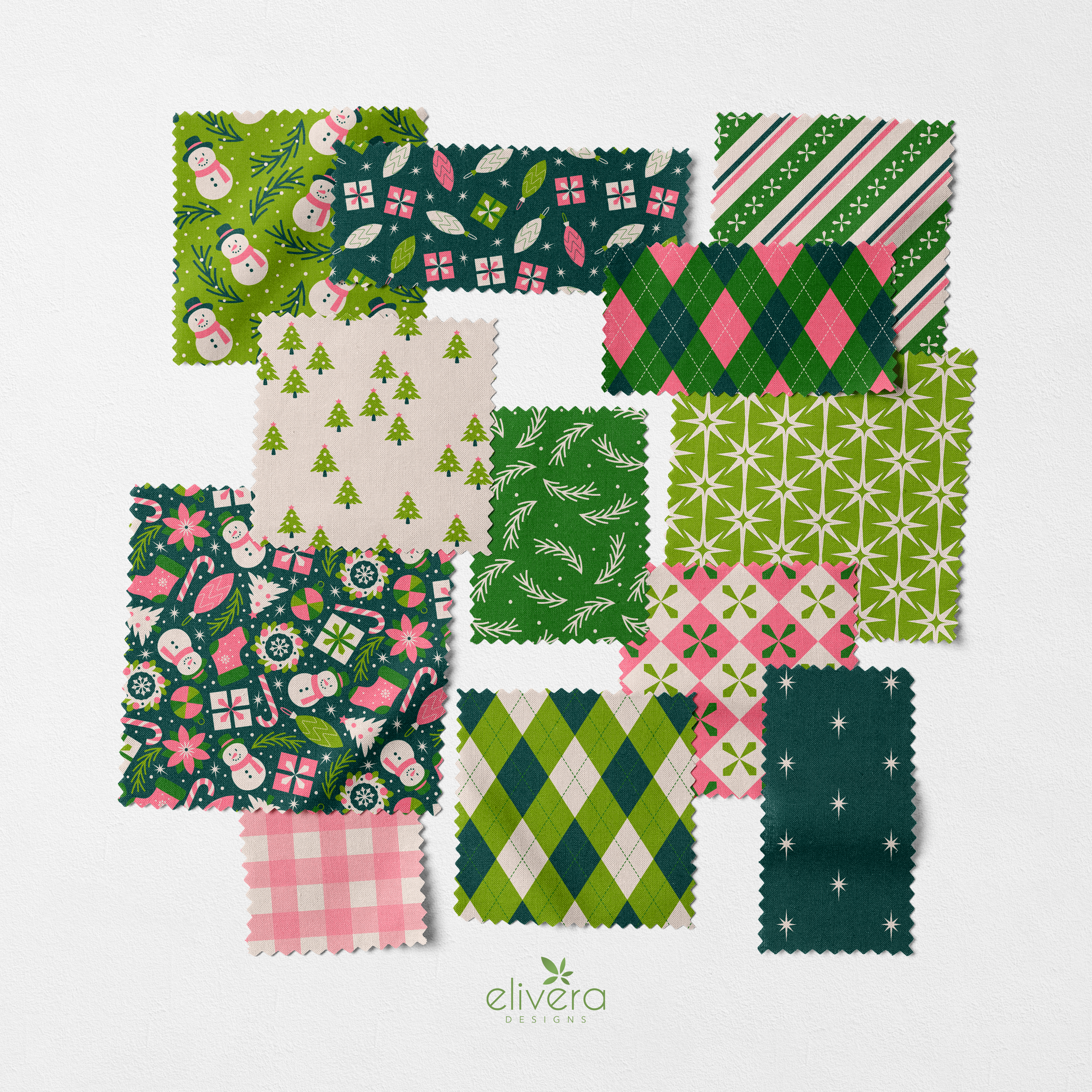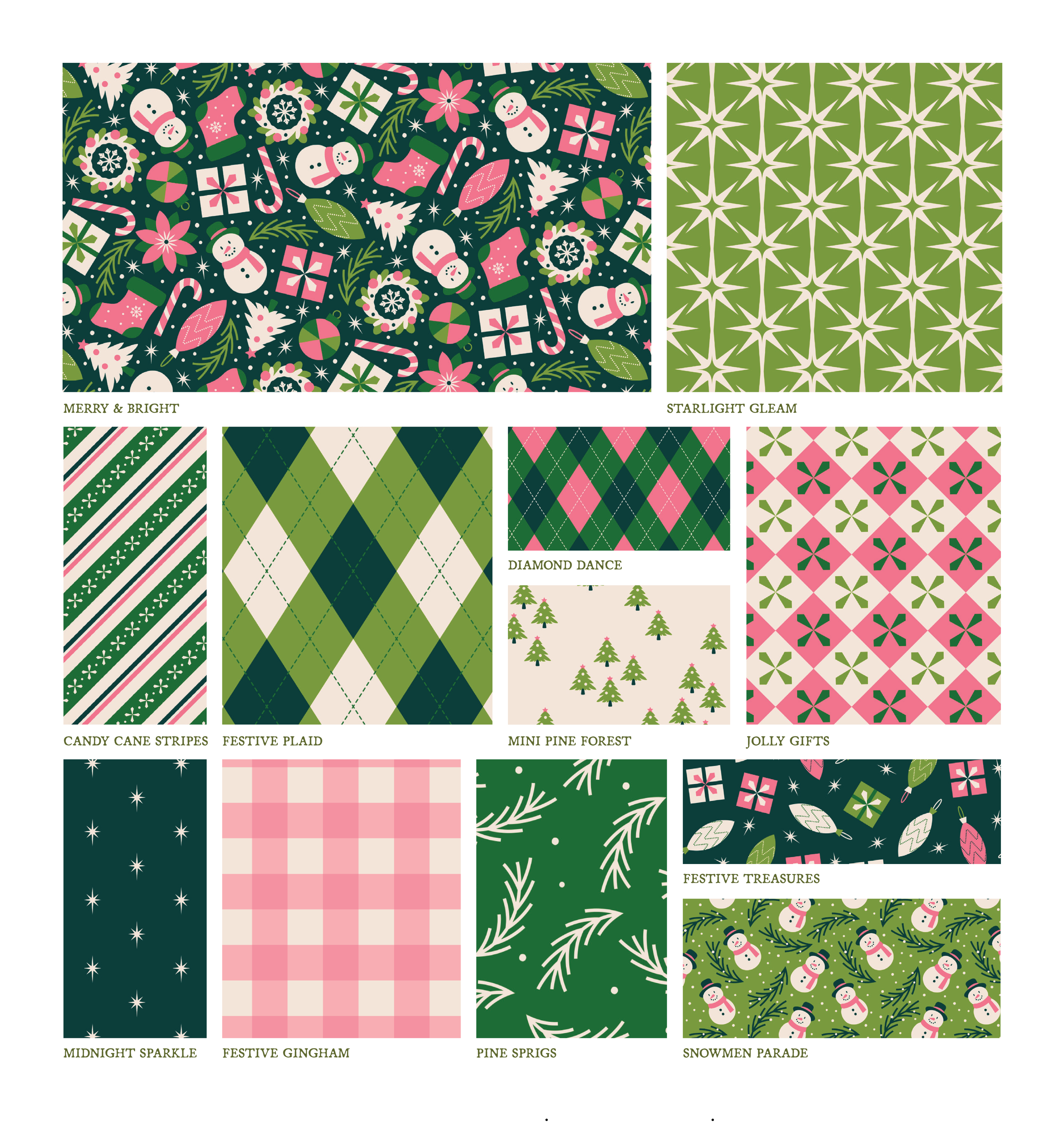 Imagine a winter wonderland filled with snowmen bundled up in scarves, gifts wrapped in ribbons, and the warmth of a cozy plaid blanket. This collection brings together all the little treasures of the holiday season: the charm of pine branches, the sparkle of stars in the night sky, and the playful dance of ornaments and candy-cane stripes.